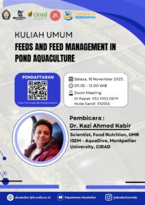 We invite all students and aquaculture practitioners to join a public lecture on “Feeds and Feed Management in Pond Aquaculture”. This lecture will be presented by Dr. Kazi Ahmed Kabir, a scientist in food nutrition from Montpellier University and CIRAD.